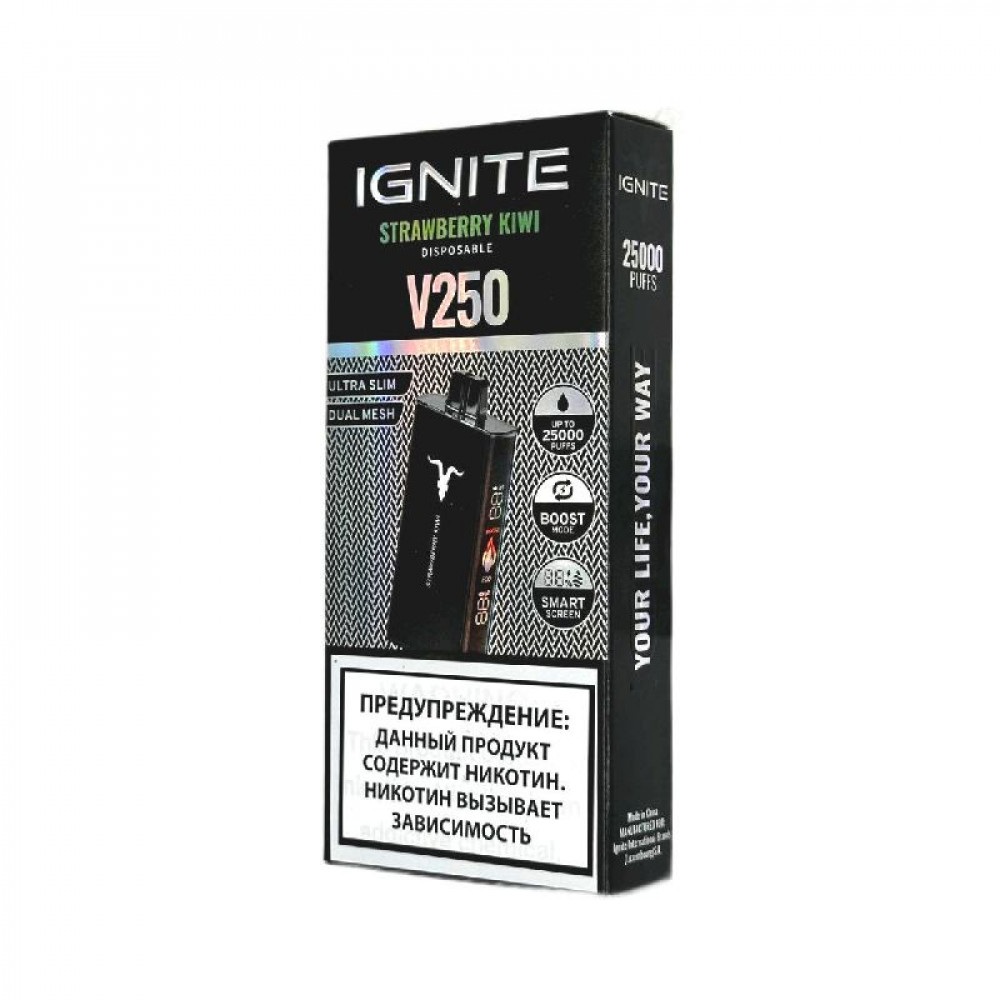 Электронная сигарета Ignite V250 Black 25000 - Strawberry Kiwi (Клубника киви) - купить в Москве