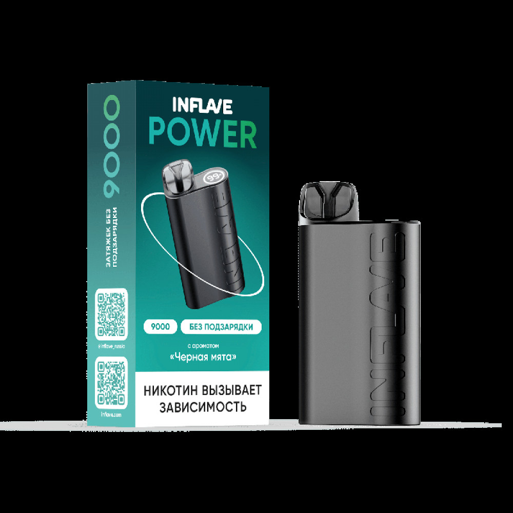 Электронная сигарета INFLAVE POWER 9000 затяжек Черная Мята - купить в Москве