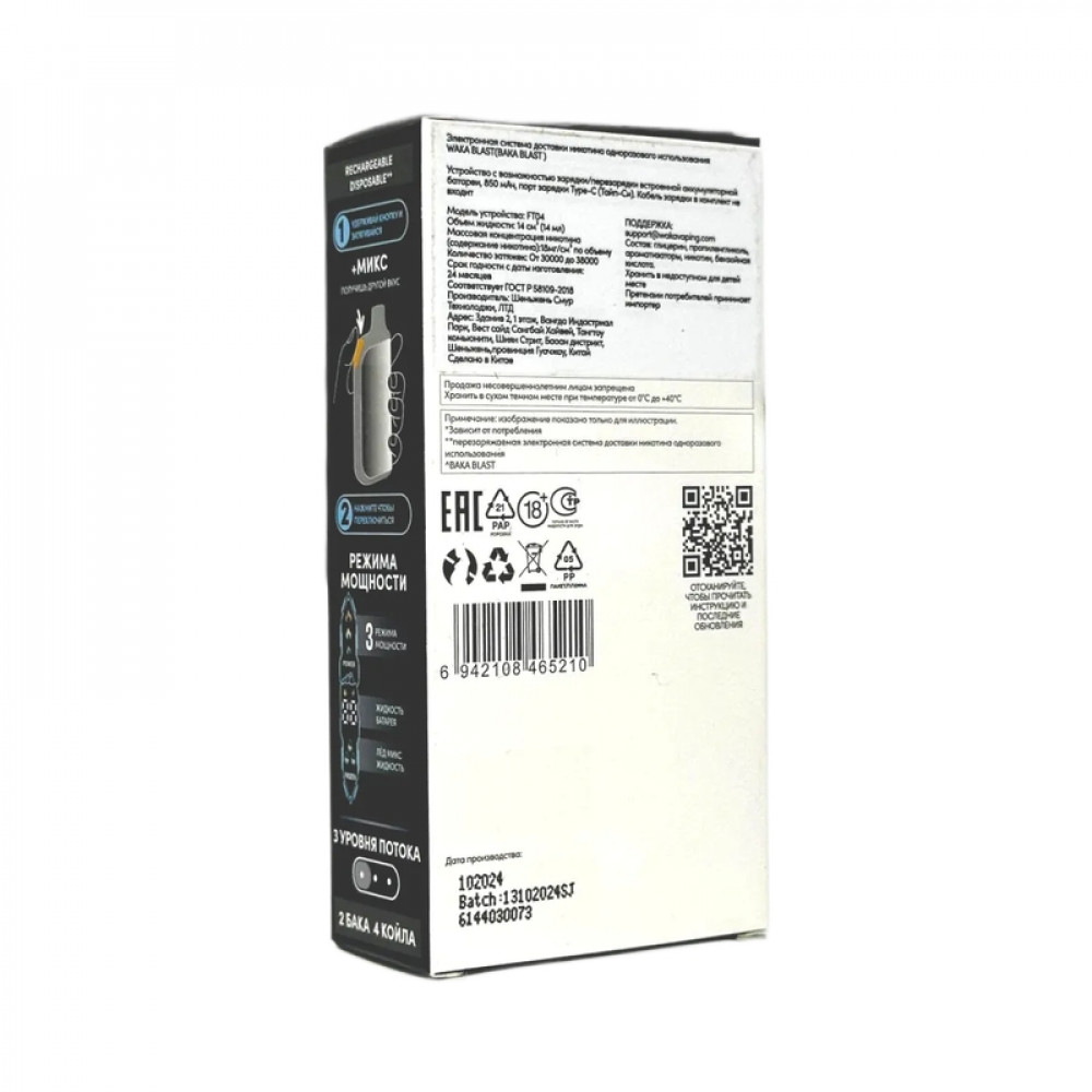 Технические характеристики WAKA BLAST 38000 Hard - Микс ягод + лимонная содовая